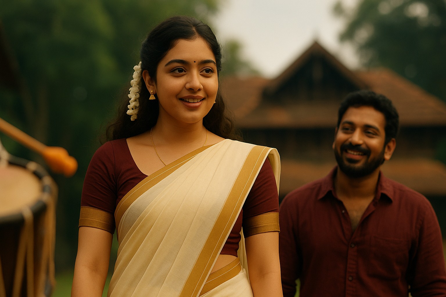 Then comes its beautiful portrayal of Kerala’s tradition. From the soft gold of the kasavu saree to the rhythmic beats of the chenda, every frame celebrates the state’s quiet grace. The film’s attention to cultural detail, even in the smallest rituals, makes it worth a watch for anyone who loves Kerala’s aesthetics.
