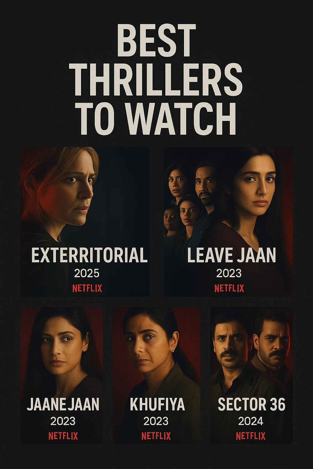 A mystery‐thriller from India. The plot revolves around a single mother embroiled in a murder, with secrets, twists, and the question: how far will she go to protect her truth. It’s also made waves for viewership numbers on Netflix. Wikipedia - Khufiya (2023) – Netflix